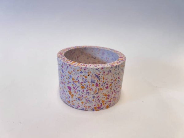 Deze terrazzo planten/bloemenhouder is een echte eyecatcher met z’n vrolijke gekleurde roze, lila en oranje spikkels. Elk exemplaar is met de hand gemaakt en dus uniek, geen twee zijn helemaal hetzelfde!