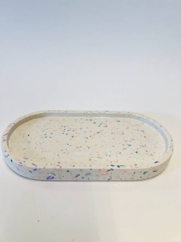 Handgemaakt terrazzo schaaltje met kleurrijke spikkels.
